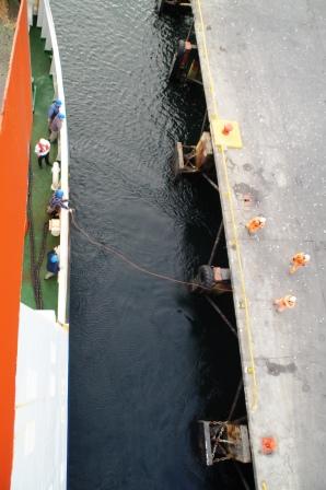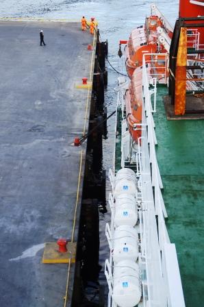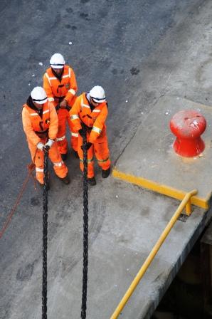 Ein Manöver, bleibt ganz alleine dem Kapitän überlassen, das An- und Ablegen im Hafen. Dies war in Kapstadt, aufgrund des „Cape Doktors“ (so wird der starke Wind in Kapstadt genannt, weil er die Abgase aus der Stadt hinaus fegt), nicht einfach. Da der Hafen tagsüber aus Sicherheitsgründen aufgrund des Sturms gesperrt war, legten wir mit Verspätung ab. Das Ablegemanöver führte der Kapitän zusammen mit seinem 1. Nautischen Offizier sowie mit der Hilfe eines ortskundigen Lotsen durch. Die 2. und 3. Offiziere kümmerten sich um  das Ablegen an Bug und Heck, sowie die Herstellung der Leinenverbindung zwischen Schiff und Schlepper.