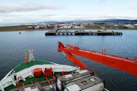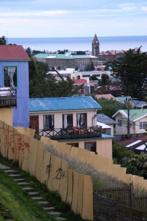 Morgens um sechs klingelt der Wecker. Wir fahren mithilfe eines Lotsen durch die Magellanstrasse und laufen bald in den Hafen ein. Das möchte ich mir nicht entgehen lassen. Punta Arenas ist schon zu sehen als ich verschlafen auf der Brücke eintreffe. Außer mir sind noch einige andere Frühaufsteher da. Mit Fotokamera ausgerüstet und gemischten Gefühlen stehen wir da und wissen nicht ob wir lachen oder weinen sollen. Die Sonne scheint, in der Luft liegt der Geruch vom Festland, wir sehen die Farbe ‚grün‘ endlich wieder und freuen uns auf Bäume, Blumen und frisches Obst und Gemüse. Allmählich erkennen wir den Hafen, er ist viel kleiner als ich ihn mir vorgestellt habe. Vom Peildeck aus beobachte ich das Anlegemanöver. Das war‘s, wir sind angekommen, die Expedition ist zu Ende. Wir verabschieden uns, die Crew winkt zum Abschied und ein Bus bringt uns ins Hotel. Einige fliegen heute schon ab, ich darf noch einen Tag in Punta Arenas verbringen. Es fühlt sich komisch an wieder auf dem Festland zu sein. Punta Arenas ist klein, aber der Verkehr, die Abgase, die Menschen stellen mich vor eine ungewohnte Szenerie. Hin und wieder fühlt es sich so an, als ob der Boden schwankt. Werde ich jetzt etwa ‚Landkrank‘?  Es ist auch ein komisches Gefühl wieder an Zimmerschlüssel, Geld und Handy zu denken, sich zu überlegen wo man Essen geht, was man bestellt, dass man nicht versehentlich geht ohne zu bezahlen. Wir wurden die letzten Wochen auf der Polarstern sehr verwöhnt und mussten uns um solche Dinge nicht kümmern. Es ist aber auch schön durch die Stadt zu schlendern und die Möglichkeit zu haben, hinzugehen wo man möchte.